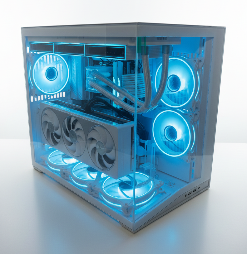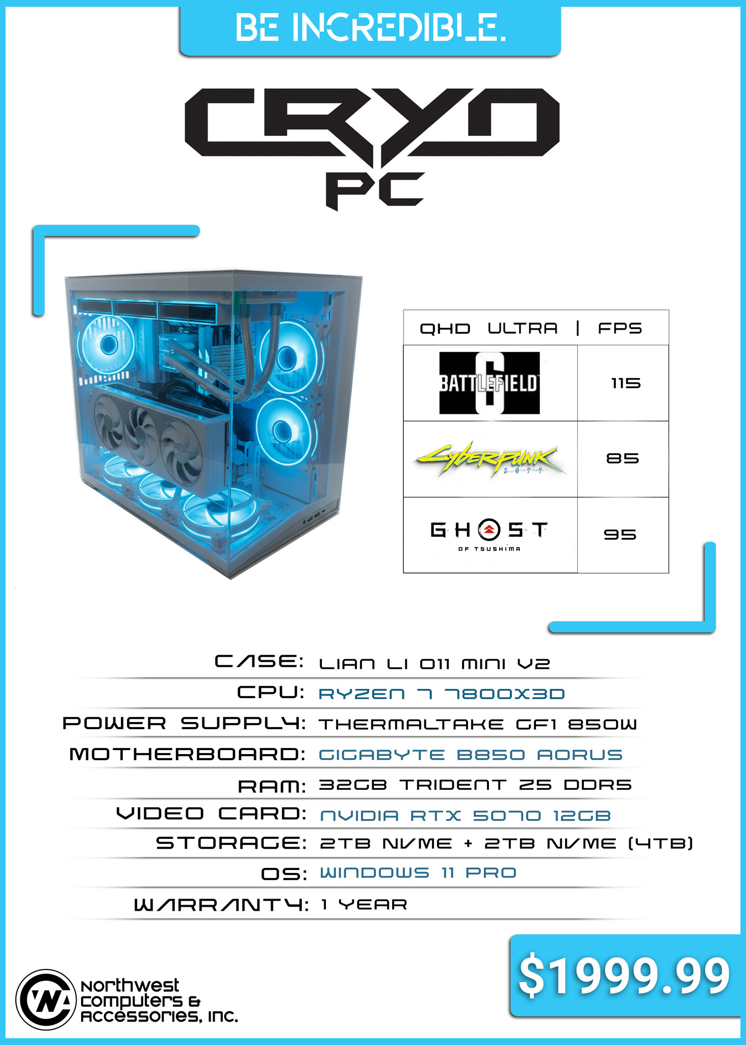Cryo-PC Mid Tower, White Gaming Computer, AMD Ryzen 7800X3D - RTX 5070 - 32GB DDR5 - 4TB NVMe